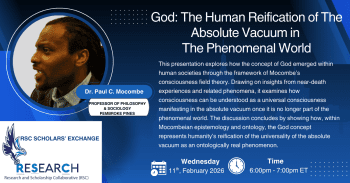 This presentation explores how the concept of God emerged within human societies through the framework of Mocombe’s consciousness field theory. Drawing on insights from near-death experiences and related phenomena, it examines how consciousness can be understood as a universal consciousness manifesting in the absolute vacuum once it is no longer part of the phenomenal world. The discussion concludes by showing how, within Mocombeian epistemology and ontology, the God concept represents humanity’s reification of the universality of the absolute vacuum as an ontologically real phenomenon.
