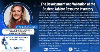 Lunch plans? Join the RSC with Dr. Morgan Washington’s presentation, “The Development and Validation of the Student-Athlete Resource Inventory.”